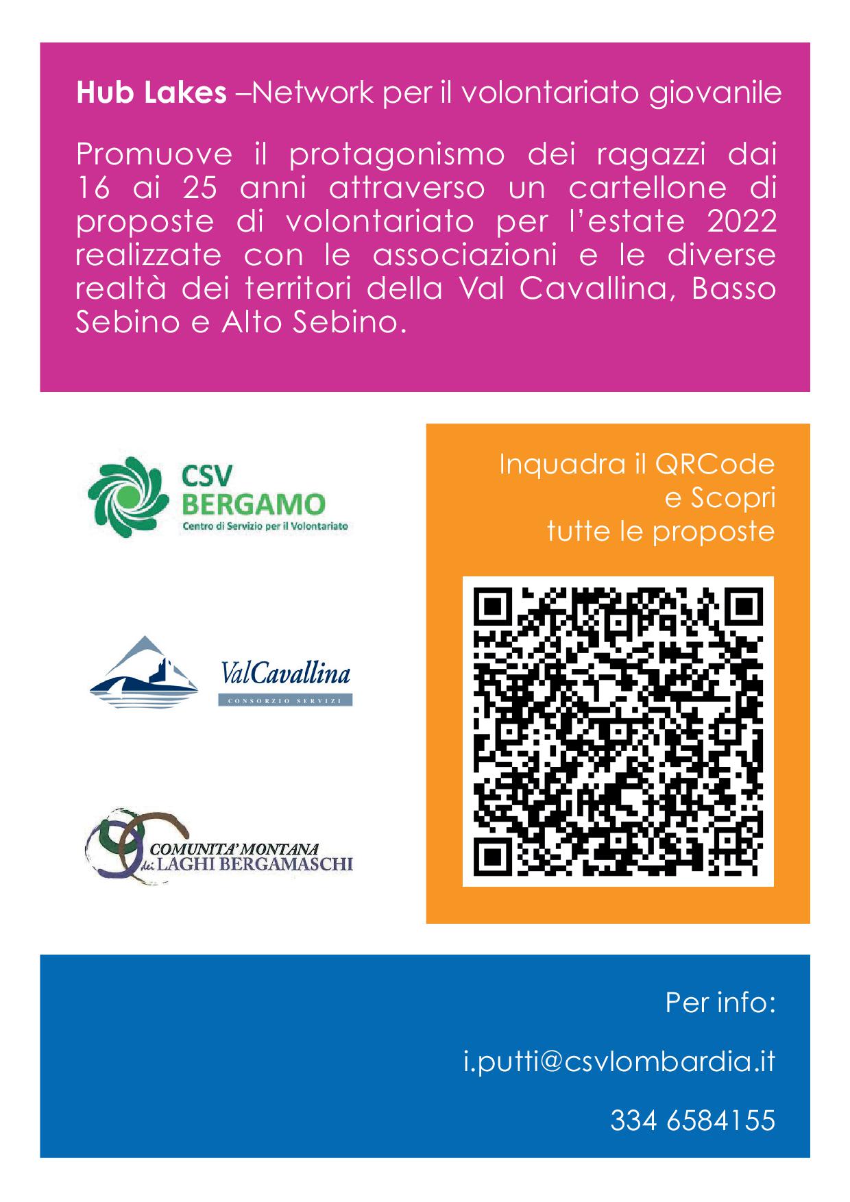 Il Centro di Servizio per il Volontariato di Bergamo nell'ambito del progetto Hub Lakes - La Rete dei Giovani negli territori di Val Cavallina, Alto e Basso Sebino presenta VEG 2022- NETWORK PER IL VOLONTARIATO GIOVANILE, un cartellone di proposte di volontariato estivo pensate appositamente per i giovani! Anche alcune associazioni e realtà della Val Cavallina hanno aderito, qualcuna anche di Casazza: aspettano te!!